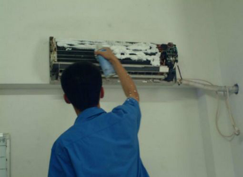 | 雄县空调维修师傅给雄县用户上门维修清洗空调。 |